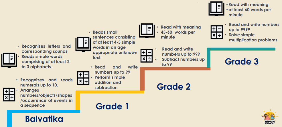 NIPUN Bharat Mission or National Initiative for Proficiency in Reading with Understanding and Numeracy is launched by the Education Ministry of India under National Education Policy 2020. This scheme ensures that every child in India gains foundational numeracy and literacy by the end of Grade 3.